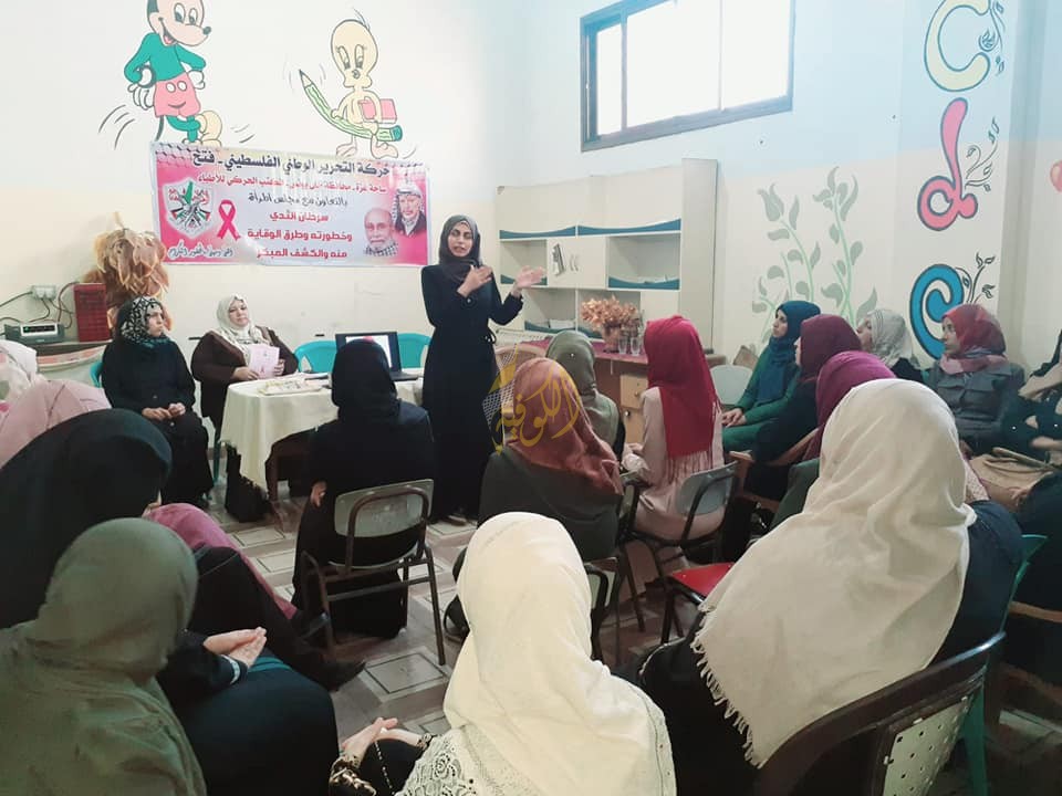 خانيونس: نظم مجلس المرأة في تيار الإصلاح الديمقراطي بحركة فتح، بالتعاون مع المكتب الحركى للأطباء، اليوم الأربعاء، ندوة توعوية في محافظة خانيونس حول سرطان الثدي، وذلك بالتزامن مع شهر أكتوبر الوردي.