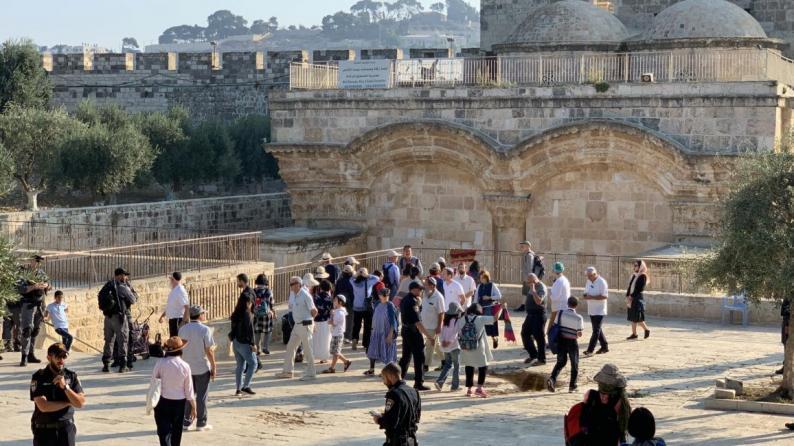 وذكرت دائرة الأوقاف الإسلامية بالقدس المحتلة، أن شرطة الاحتلال أغلقت باب المغاربة الساعة العاشرة والنصف صباحًا عقب اقتحام 129 مستوطنًا بينهم 25 طالبًا يهوديًا المسجد الأقصى، وتنظيمهم جولات استفزازية في ساحاته بحماية مشددة من القوات الخاصة.