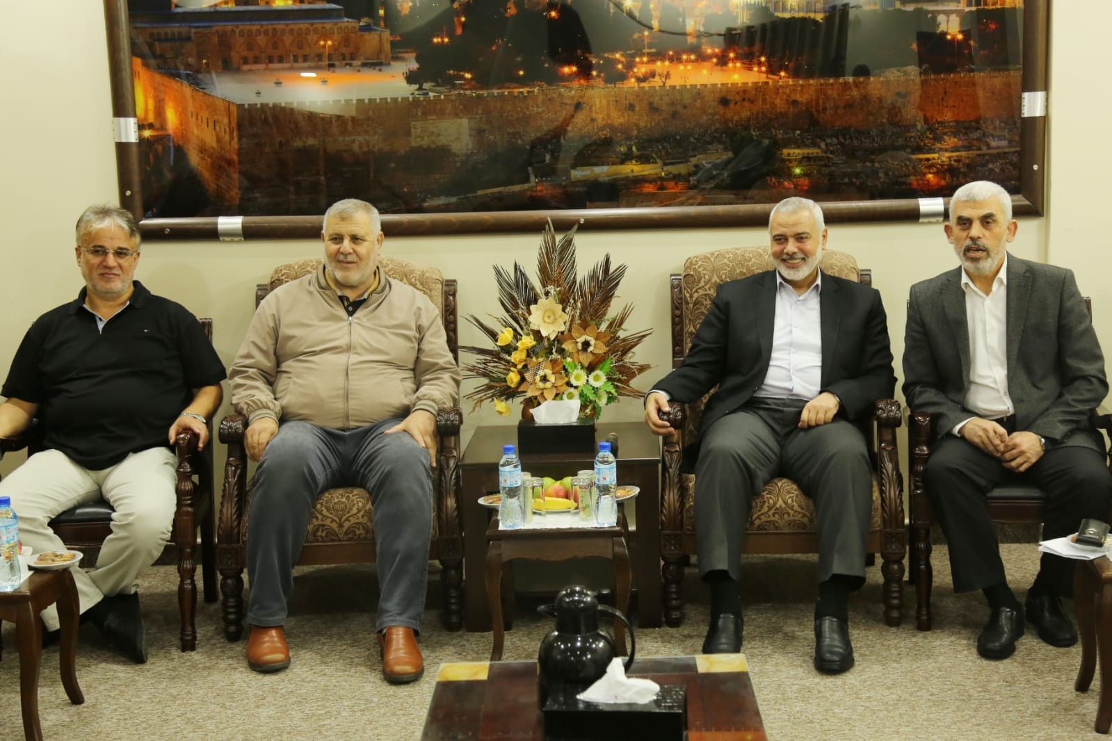 وقال رئيس المكتب السياسي لحركة حماس، إسماعيل هنية، في مؤتمر صحفي عقب اللقاء الذي عقد في مكتب رئيس الحركة في مدينة غزة يحيى السنوار، إن "الانتخابات كانت يجب أن تجري في ظل مصالحة فلسطينية، وحكومة وحدة، والاتفاق على إجرائها؛ رئاسية وتشريعية ومجلس وطني"، مشيرا إلى وجود توافق وطني لإجرائها.