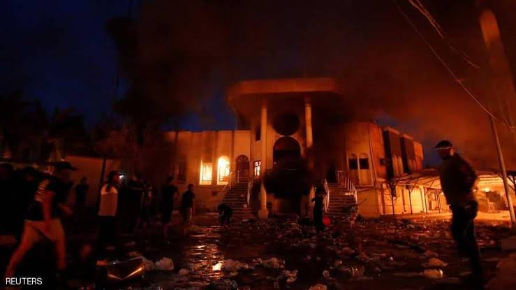 المتظاهرون العراقيون يحرقون القنصلية الإيرانية في النجف