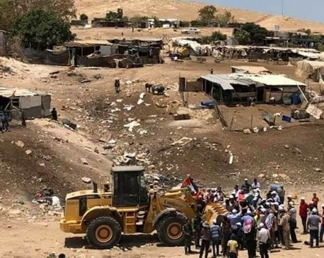 وقالت مراسلتنا إن قوات الاحتلال اعتدت بالضرب على النشطاء والأهالي، الذي شكلوا سلسلة بشرية بأجسادهم، لمنع جرافات وآليات الاحتلال من هدم المساكن والمنشآت في الخان الأحمر، وتشريد سكانه.