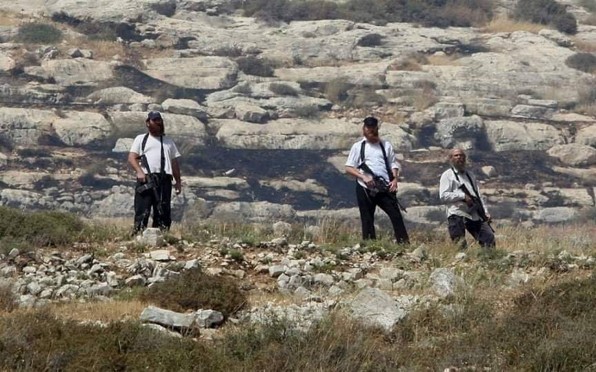 نابلس: جرفت آليات تابعة للمستوطنين، اليوم الاربعاء، أراضي في قرية بورين جنوب نابلس.