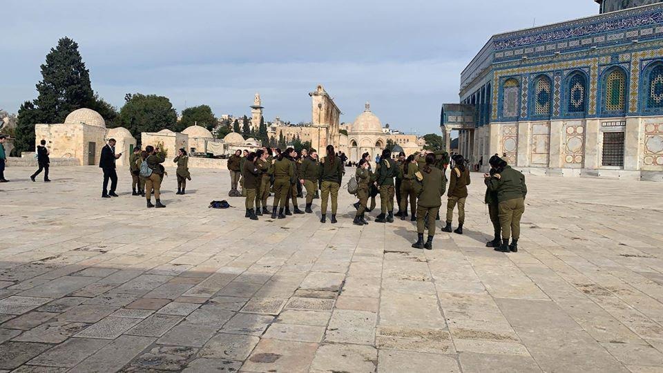 وأضافت، أن 39 مجندة إسرائيلية بلباسهن العسكري و9 من ضيوف شرطة ومخابرات الاحتلال اقتحموا أيضًا المسجد ودنسوا باحاته.