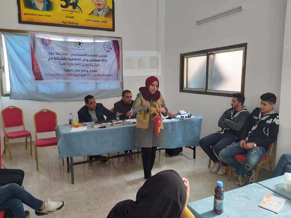 غزة: نظمت لجنة مستقبل وطن الكشفية بمجلس الشباب الفلسطيني، بحركة فتح، ورشة عمل بعنوان "الحماية والاستعداد لمواجهة الكوارث والأزمات"، في محافظة غزة