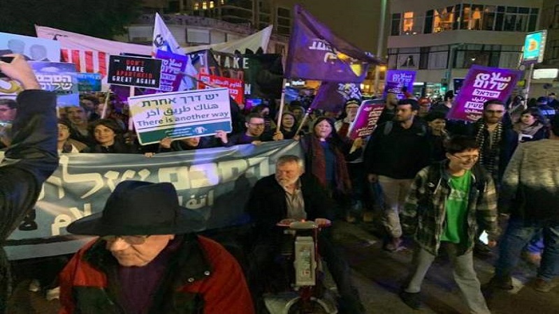 وكالات: نظم المئات من نشطاء أحزاب اليسار والمنظمات الحقوقية اليسارية في إسرائيل، مساء السبت، تظاهرة، رافضة لصفقة ترامب.