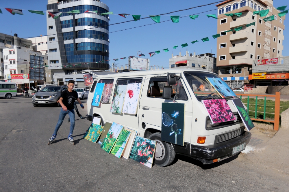 غزة: أقام الفنان عمار أبو شمالة (32 عامًا) وزوجته "أروى" (32 عامًا)، معرضا متنقلا في مدينة رفح جنوبي قطاع غزة أطلقا عليه اسم "صورة وتذكار"، لعرض للوحات فنية مرسومة وأخرى مطبوعة، عُلقت بشكل غير تقليدي على باص متوقف إلى جانب الطريق.