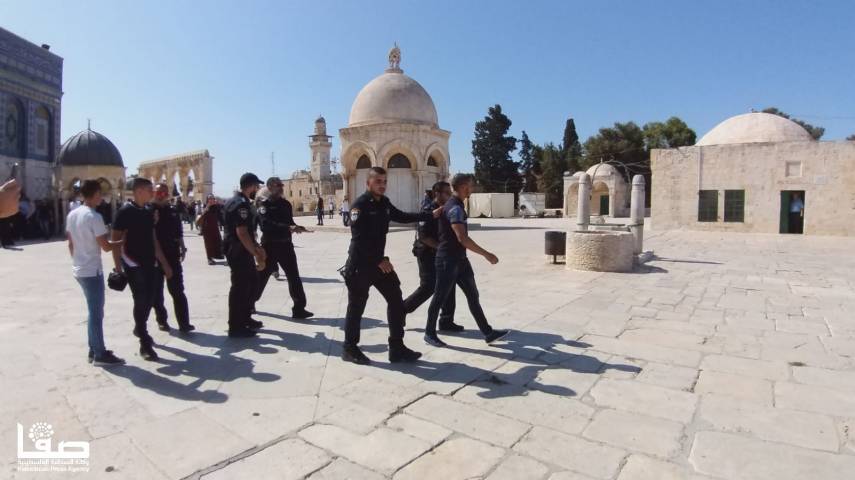 واقتحم 45 مستوطنًا و59 طالبًا يهوديًا باحات المسجد الأقصى، تحت حراسة مشددة من شرطة الاحتلال التي رافقت المقتحمين في مجموعات متعددة انطلاقا من باب المغاربة.