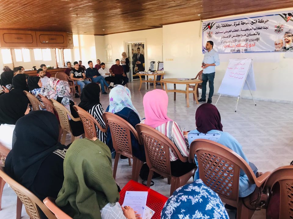 غزة: افتتح المكتب الحركي للصحفيين التابع لتيار الإصلاح الديمقراطي في حركة فتح و بالشراكة مع مجلس الإعلام الأسبوع الإعلامي دورة تدريبية برفح تحت عنوان ( نحو اعلام هادف )الذي يستهدف نخبة من خريجي الاعلام .