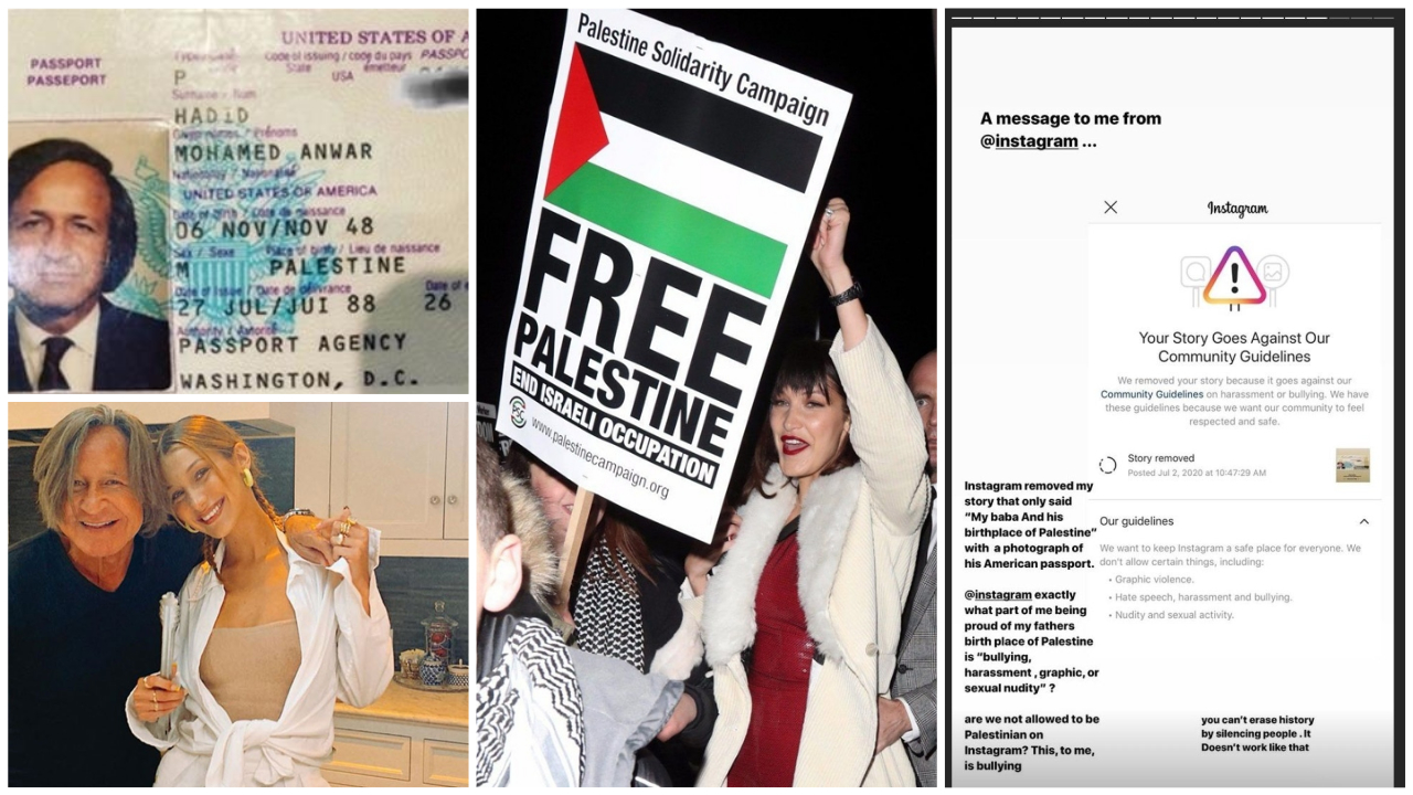 وكانت عارضة الأزياء الأمريكية فلسطينية الأصل بيلا حديد هاجمت موقع التواصل الاجتماعي "إنستغرام" قبل نحو الشهرين لحذفه صورة نشرتها لجواز سفر والدها تظهر مسقط رأسه فلسطين.