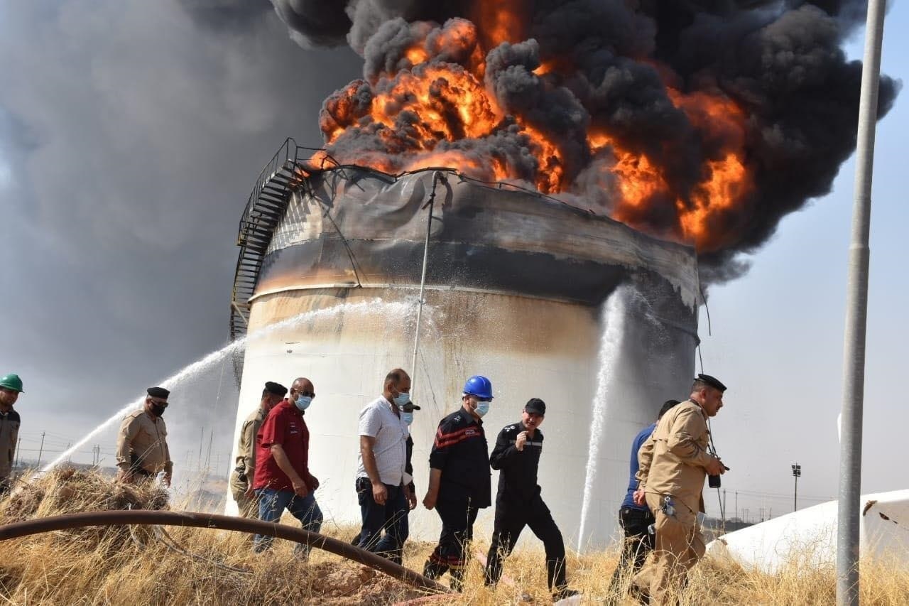 بالصور|| احتراق خزان يحتوي على 5 ملايين لتر من النفط في العراق