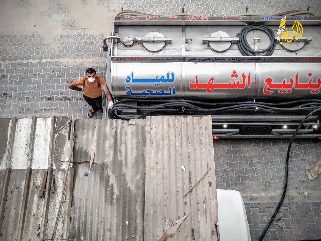 خاص بالفيديو|| عمال "ينابيع الشهد" يتحدون كورونا لتوصيل المياه لأهالي غزة