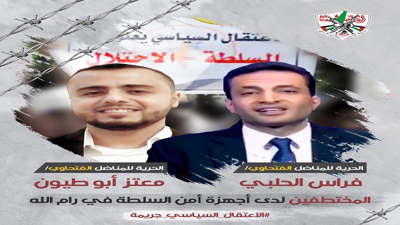 وحسب تغريدات المشاركين فإن "اعتقال أبناء فتح من قبل أجهزة أمن السلطة هو إمعان في تكريس نهج الديكتاتورية والتسلط والاستقواء على كوادر الحركة وأعضائها"، مهاجمين السلطة بقولهم "المتجبرون الذين استقوا بسيف قطع الرواتب على أبناء فتح في غزة، واستقوا بالعصا الأمنية بحق أبناء فتح في الضفة، فمتى ينتهي كل هذا الظلام ؟".