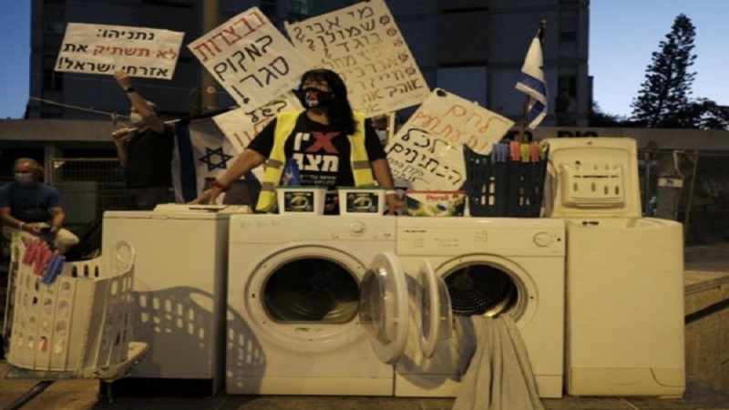 إسرائيليون يتظاهرون أمام منزل نتنياهو بالغسالات بعد فضيحة "الغسيل الوسخ"