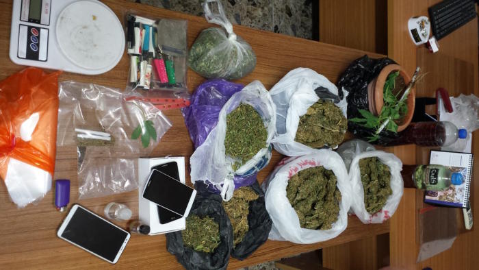 وأضاف ارزيقات أنه تم التحرك إلى منزله من أجل التفتيش بمساندة الأمن الوطني والشرطة الخاصة والاستخبارات بعد استصدار مذكرة تفتيش حسب الأصول من النيابة، وأثناء التفتيش تمكنت القوة من ضبط ثلاثة أكياس كبيرة بداخلها عرانيس يشتبه أنها عرانيس الماريجوانا المخدرة وشتلة ماريجوانا وميزان لوزن المواد المخدرة وأكياس شفافة لتغليف لتغليفها وبيعها، وأسمدة سائلة تستخدم لري اشتعال الماريجوانا بحيث بلغ مجموع وزن المواد المخدرة المضبوطة بالمنزل وبحوزته كيلو ونصف و سجائر جاهزة للتعاطي بلغ وزنها ٩.٨ غرام.