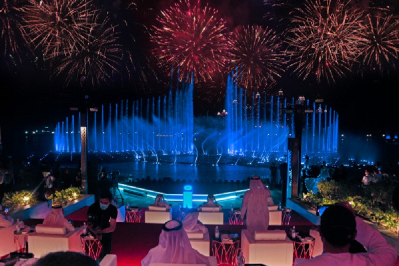 وكشفت السلطات النقاب عن نافورة النخلة الواقعة في "ذي بوينت" بمنطقة نخلة الجميرة، الواجهة البحرية لدبي، في فعالية جرى بثها مباشرة حول العالم ليل الخميس.