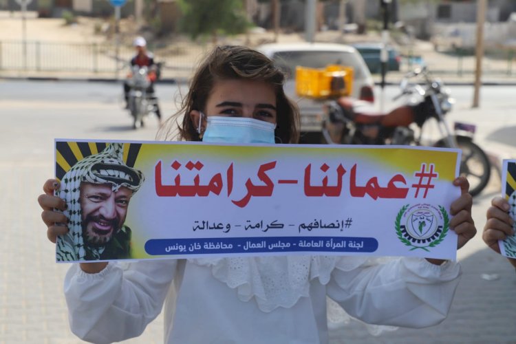 بالصور|| مجلس المرأة بخانيونس ينظم وقفة احتجاجية رفضا للتمييز الجغرافي ضد عمال غزة