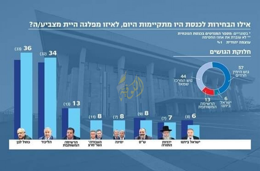 وبحسب نتائج الاستطلاع، الذي أجرته صحيفة معاريف، ونشرت نتائجه صباح اليوم الجمعة، لو جرت الانتخابات الآن، سيحصل الليكود على 28 مقعدا، مقابل 21 مقعدا لتحالف "يمينا" المتطرف.