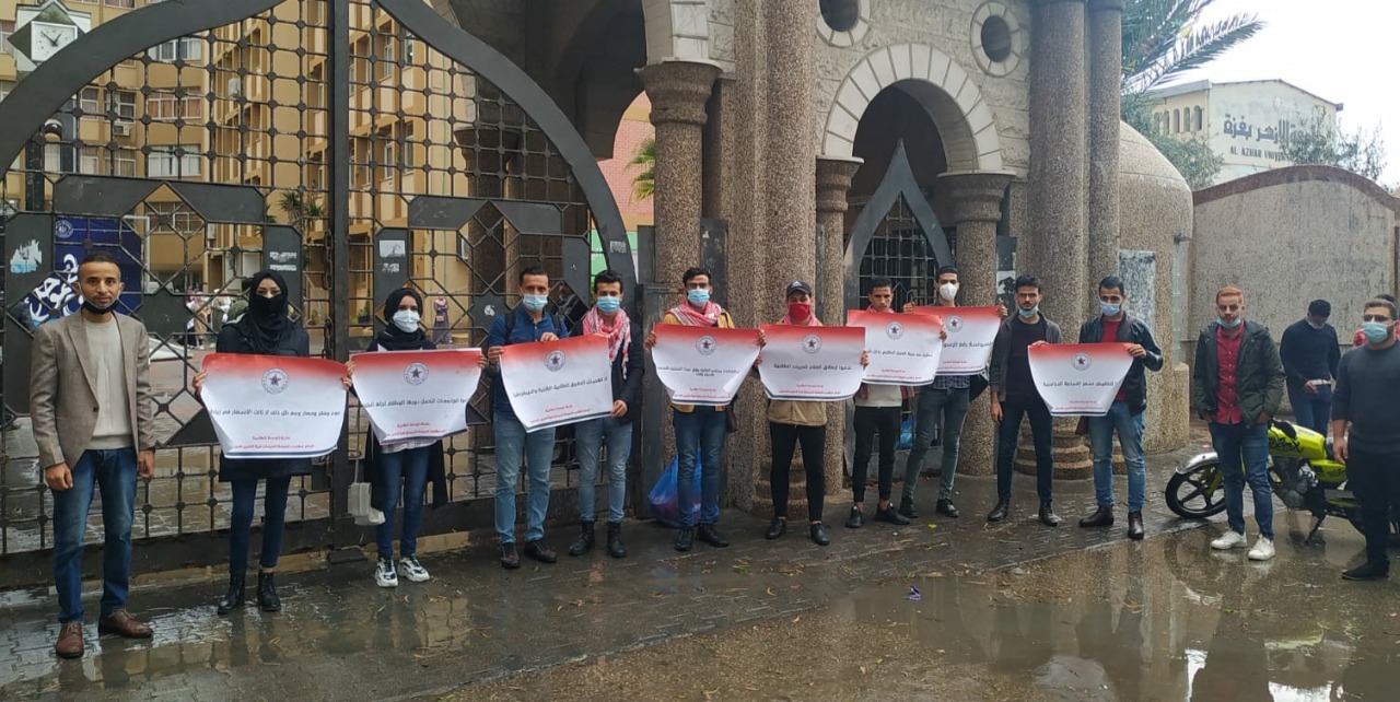 صور|| وقفة طلابية بجامعة الأزهر تدعو لتخفيض سعر الساعة الدراسية