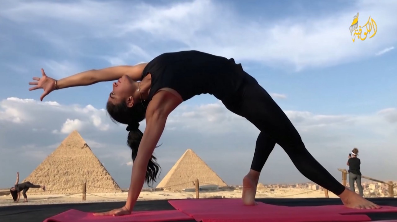 القاهرة: تلقى قرابة 200 شخص تدريبًا لليوغا، تحت سفح الأهرامات المصرية.
