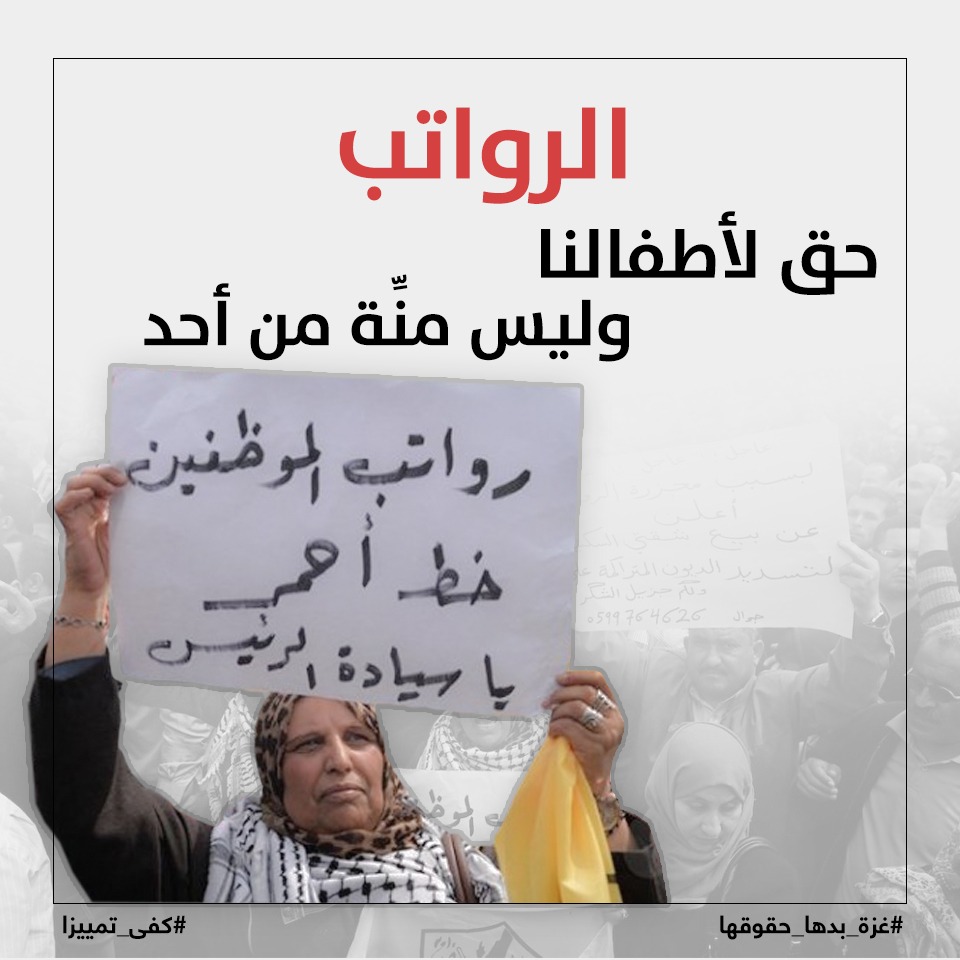 وتابع، "البنوك تستطيع أن تنتظر، والقطاع الخاص يستطيع أن ينتظر، أما نحن فلن ننتظر أكثر مما انتظرنا لصرف رواتبنا ومستحقاتنا".