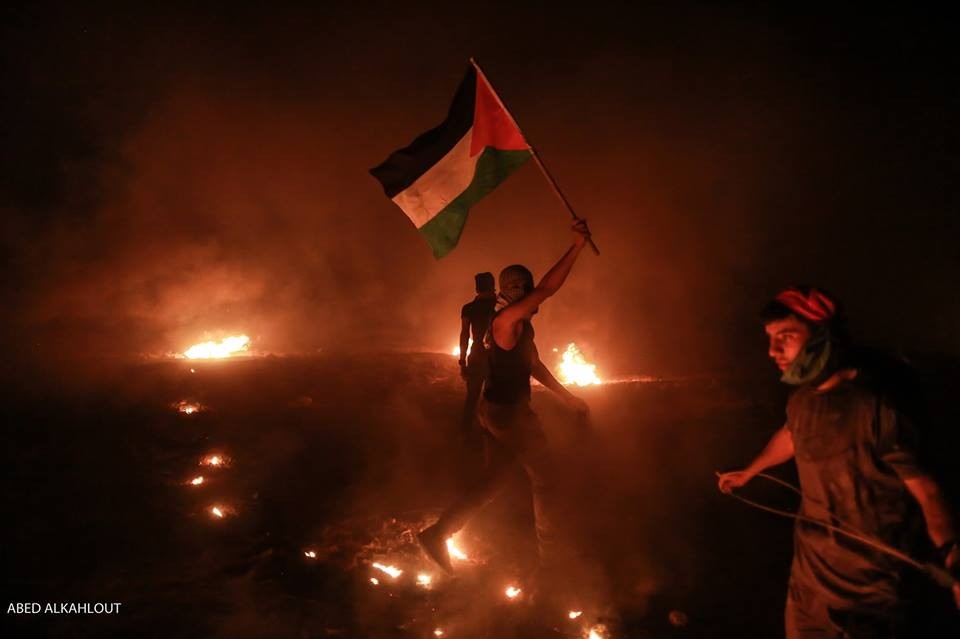واستمرت فعاليات وحدة الإرباك_الليلي شرق خزاعة بخانيونس حيث تم إشعال إطارات وإلقاء قنابل صوتية