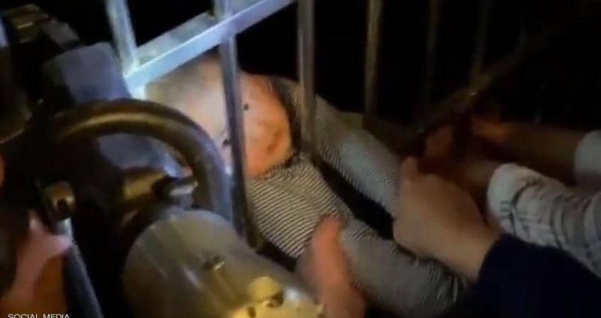 وفي خلال دقائق وصلت قوات الدفاع المدني التي نجحت في تخليص الصغير بعد قطع ألواح الحديد، في عملية مثيرة تم توثيقها بالفيديو.