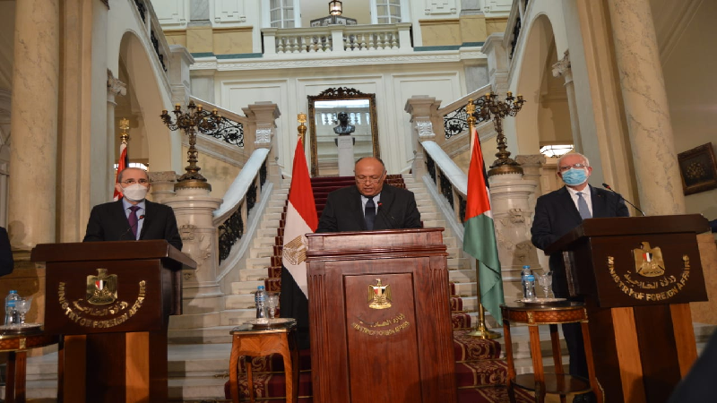 متابعات: استضاف وزير خارجية جمهورية مصر العربية اليوم السبت، نائب رئيس الوزراء وزير الخارجية وشؤون المغتربين في المملكة الأردنية الهاشمية ووزير الخارجية والمغتربين في دولة فلسطين في اجتماع تشاوري استهدف تنسيق المواقف وتبادل وجهات النظر حول التطورات والقضايا الإقليمية، وفي مقدمتها تلك المرتبطة بالقضية الفلسطينية.