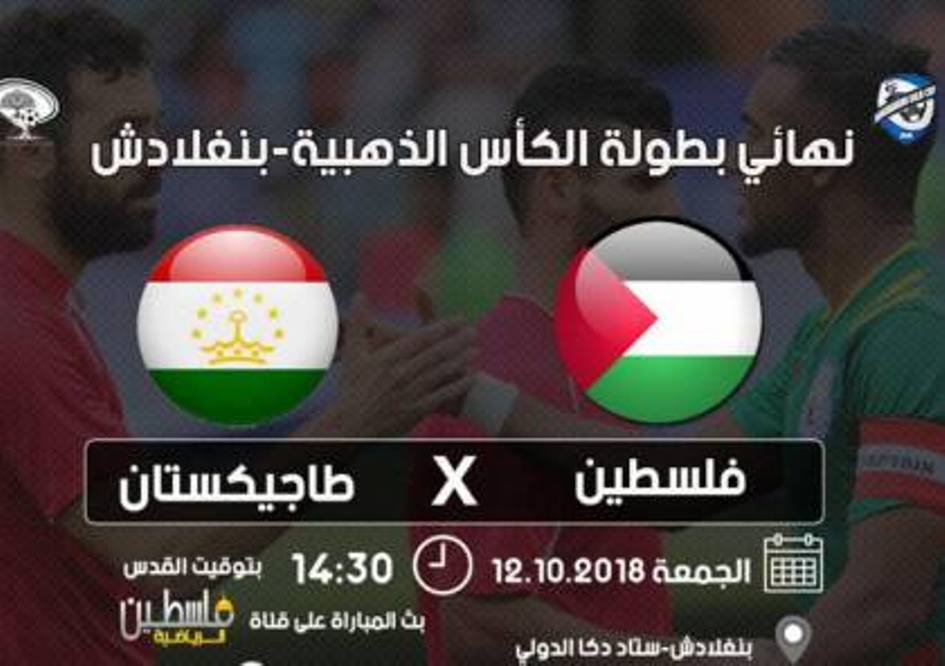 رام الله: تسدل الستارة اليوم الجمعة عن بطولة الكأس الذهبية في بنغلادش بنسختها الرابعة والتي تشارك فيها فلسطين لأول مرة حيث تقام المباراة النهائية للبطولة في ملعب دكا بالعاصمة البنغالية بين المنتخبين الفلسطيني والطاجكستاني اللذان كان قد التقيا في الدور الأول وفاز الفلسطيني بالنتيجة 2/ صفر.