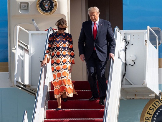 ويشار إلى أن ميلانيا، السيدة الأولى السابقة لأمريكا، بدلت ملابسها خلال توجهها إلى فلوريدا وارتدت فستانًا ذا ألوان زاهية من تصميم العلامة التجارية الإيطالية" جوتشي"، ومطبوع عليه أشكال هندسية، ويبلغ تكلفته 3700 دولار، كما كانت مرتدية حذاءً مسطحًا ونظارة شمسية سوداء.