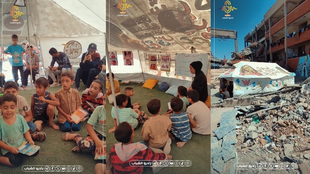 الكوفية افتتاح خيمة تعليمية وسط دمار مدرسة عبد العزيز بخانيونس