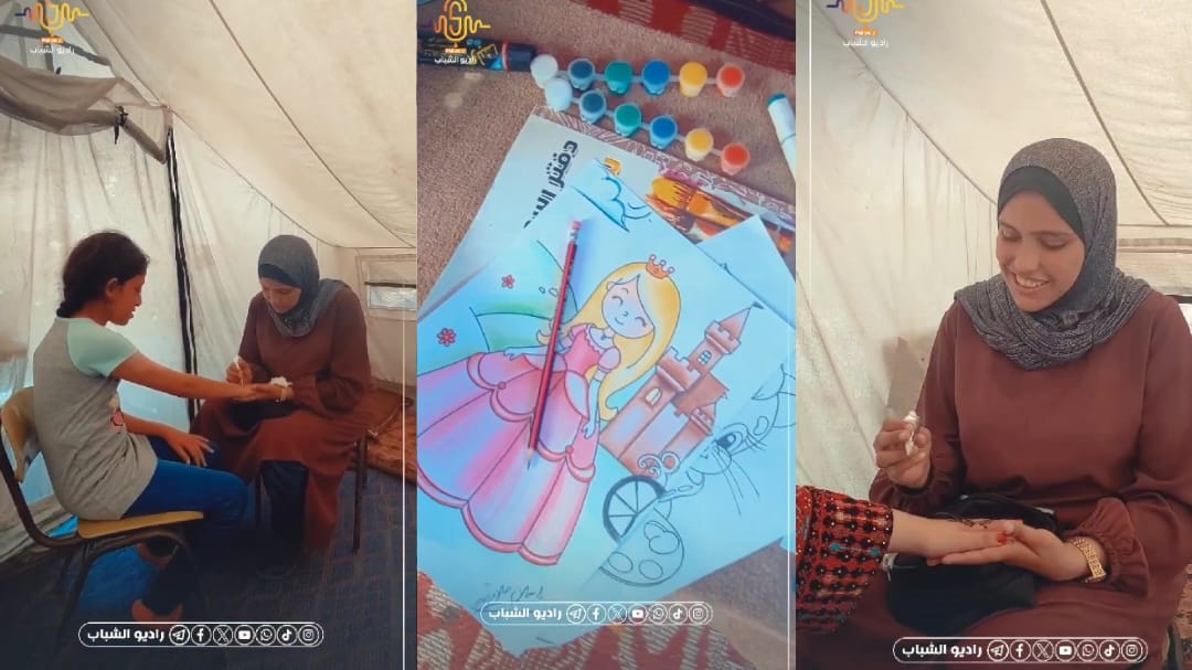 بالفيديو// فنانة تشكيلية نازحة من شمال القطاع توظف فنها لإدخال البهجة والسرور على النازحين